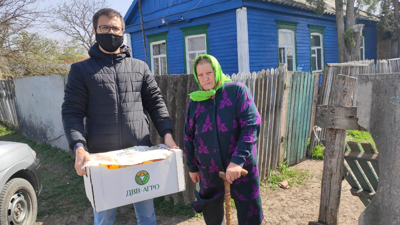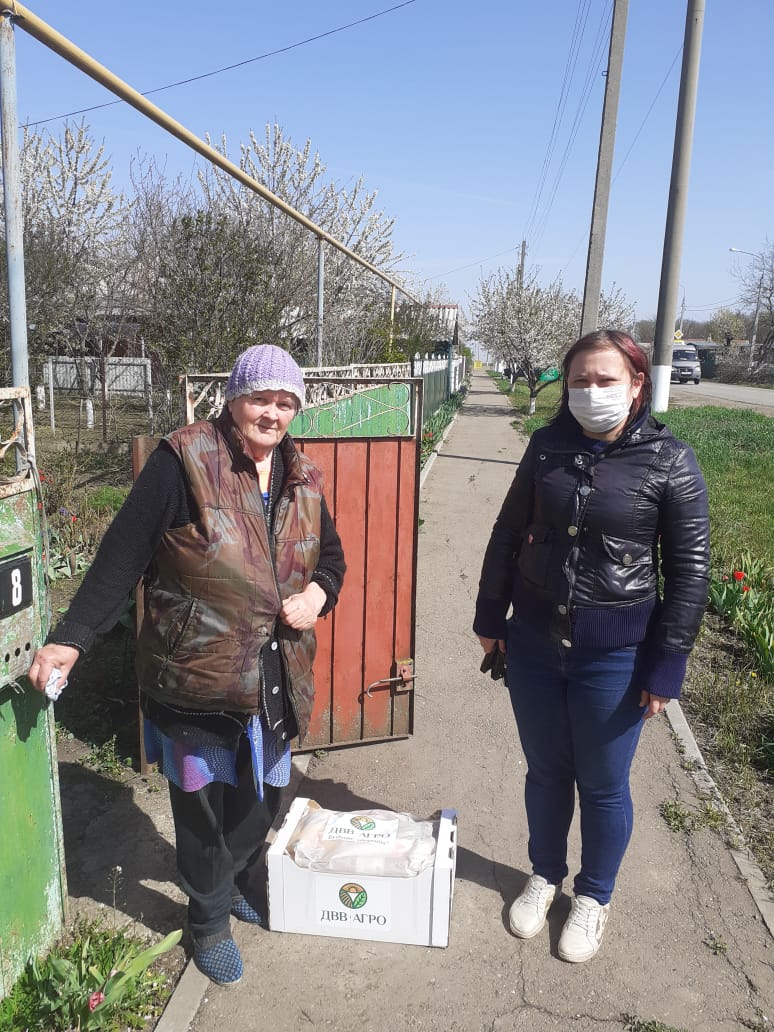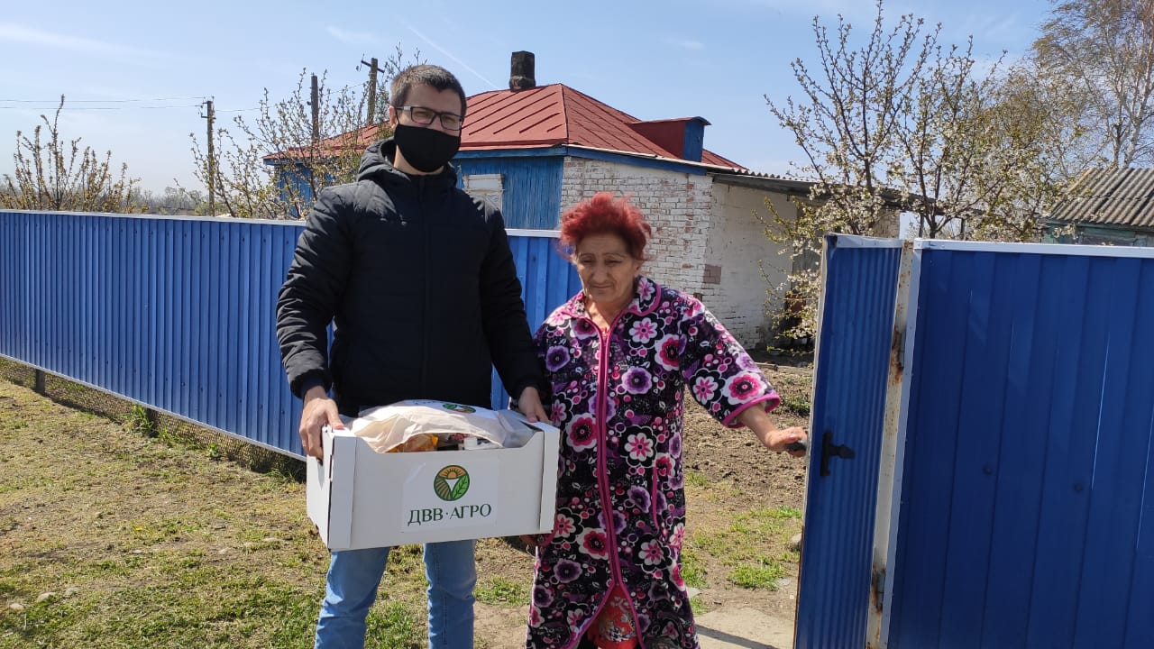 Начиная с "17" апреля 2020 года, сотрудники ООО "ДВВ-Агро" вместе с социальными работниками начали развозить по Кущевскому району огромные коробки, весом почти 20 кг каждая. Всего будет сформировано не менее 1000 таких коробок. В каждой из них набор продуктов – от круп, сахара, муки, консервов и банок с мясной тушенкой, до деликатесов к пасхальному столу. Также в каждый набор была вложена открытка: